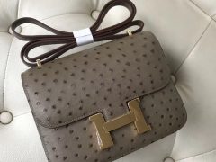 Hermes Constance 19cm CK18大象灰 Ostrich 御用原厂KK 南非鸵鸟皮 金扣