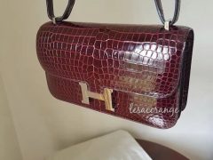 Hermes Constance Elan 26cm 57 Bordeaux 波尔多酒红 Shiny porosus crocodile