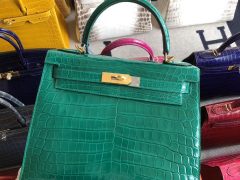 Hermes Kelly 28cm 6Q 翡翠绿 Very emeraude 亮面两点 HCP鳄鱼皮 尼罗鳄
