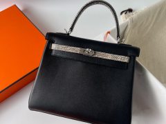 Doha Qatar Hermès Kelly 25cm Touch Swift/Lizard Noir Silver hardware