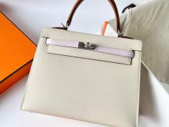 Dubai Hermès Kelly 25 Epsom Craie/Mauve Pale/Gold silver hardware