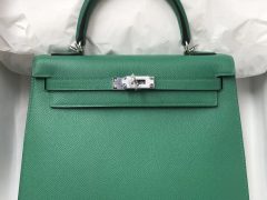 爱马仕凯莉包尺寸有哪几种 Hermes Kelly bag 25cm Epsom掌纹牛皮 U4丝绒绿 银扣
