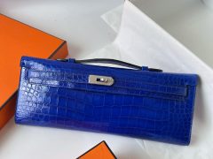 Dubai Hermès Kelly cut Blue electric shiny porosus crocodile Palladium Hardware