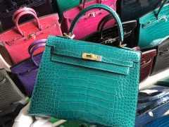 爱马仕鳄鱼皮kelly Dezhou USA Hermes Kelly 25cm O6帝王绿 Vert Jade尼罗鳄鱼