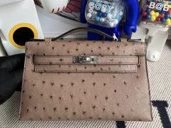 Indonesia Hermes Mini Kelly Pochette Ostrich M8 Gris Asphalte PHW