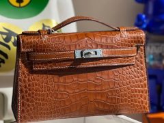 Hermes MiniKelly Pochette 22cm 亮面方块 美洲鳄鱼 6Q翡翠绿 Vert Emeraude
