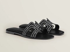 Hermes Oran 凉鞋 麂皮山羊皮凉鞋 “H”型鞋面饰水钻和“Arcane”图案