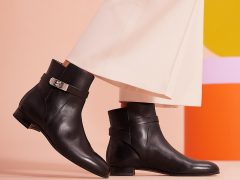 Hermes ollow 小牛皮及踝靴 镀钯Kelly鞋扣和绉胶效果橡胶鞋底
