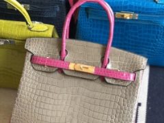 爱马仕鳄鱼皮铂金包辨认 Hermes Birkin 30cm L3玫瑰紫Rose Purple 御用原装HCP鳄鱼