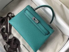 上海国金中心爱马仕专卖店 Hermes Mini Kelly 二代 19cm 7F孔雀蓝 Epsom银扣