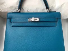 爱马仕经典款女包 Hermes Kelly Bag 25 Epsom牛皮 7W伊兹密尔蓝 银扣