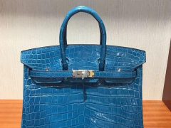 爱马仕鳄鱼皮铂金包价格 Hermes Birkin 25 Bag 亮面两点鳄鱼皮 7W伊兹密尔蓝