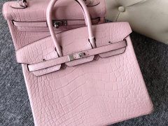 爱马仕包包图片及价格 Hermes Birkin 25cm 美洲鳄 5P Pink 樱花粉