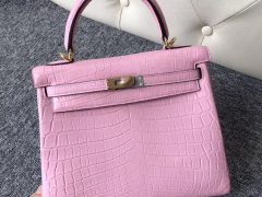 杭州爱马仕专柜万象城凯莉包 Hermes Kelly 25cm 尼罗鳄 5P Pink 樱花粉