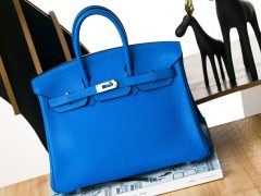 爱马仕Hermes Brikin 25 togo T7 水妖蓝 Blue Hydra蜡线手缝制银扣