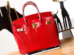 爱马仕Hermes Brikin 30cm 法拉利红色 亮面两点尼罗鳄鱼皮革 金扣