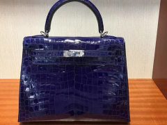 爱马仕凯莉包价格Hermes Kelly bag 25 亮面澳洲湾鳄鱼皮 7T电光蓝 银扣