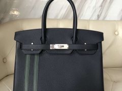 爱马仕包包 Hermes 铂金包Birkin 30cm Bag Togo 2Z午夜蓝双杠6O松柏绿 银扣