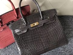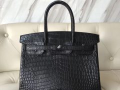 爱马仕包包官网 鳄鱼铂金包 Hermes Birkin 30 雾面两点 尼罗鳄鱼CK89黑色黑扣金属