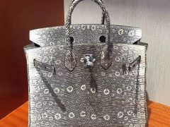 Hermes Brikin 25 Bag lizard 蜥蜴皮 雪花纹自然色手工蜡线缝制银扣
