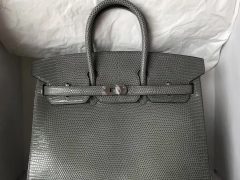 爱马仕铂金包价格Hermes Birkin 25 Bag Lizard 进口蜥蜴皮 CK81斑鸠灰