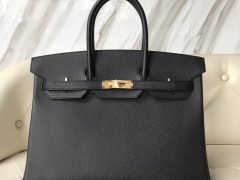hermes铂金包价格 Birkin 35cm Epsom CK89黑色内拼色Q5国旗红 金扣