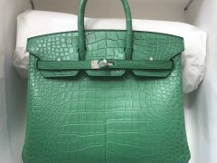 爱马仕铂金包价格 Hermes Birkin Bag 25 雾面方块鳄鱼 U4丝绒绿 银扣