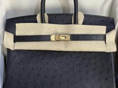 爱马仕铂金包价格官网 Hermes Birkin 25cm Ostrich 进口KK鸵鸟皮 89 Noir 黑色 GHW