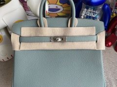 Qatar Doha Hermes Birkin 25cm Togo 7G Ciel 天青色 银扣 全手工蜜蜡线缝