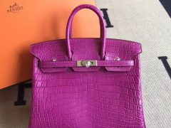爱马仕鳄鱼皮Hermes Birkin25 Matte nilo crocodile雾面两点鳄鱼 玫红紫 银扣