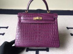 爱马仕凯莉鳄鱼皮包包价格 Hermes 紫色 kelly 25cm Bag 雾面方块 鳄鱼皮