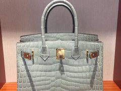 爱马仕鳄鱼皮铂金包价格 Hermes Birkin 25 Bag 亮面鳄鱼皮 8U冰川蓝金扣