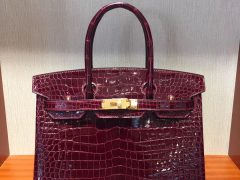 爱马仕鳄鱼皮铂金包 Hermes Birkin 30 Bag 亮面两点鳄鱼皮 F5勃艮第酒红