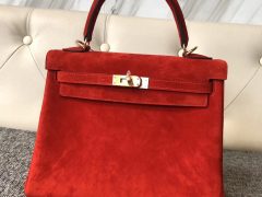 Canada Hermes Kelly 25cm 羊皮反绒 麂皮 S3心红色 Rose de course