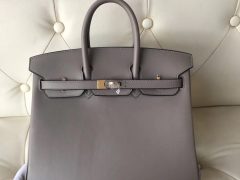 爱马仕birkin包价格 Hermes M8沥青灰Birkin 25 Swift皮 金扣