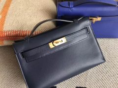 Hermes mini Kelly Pochette 22 Swift calfskin牛皮 靛蓝色凯莉手拿包