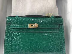 Hermes Mini Kelly 22 pochette 爱马仕凯莉手拿包 6Q翡翠绿金扣