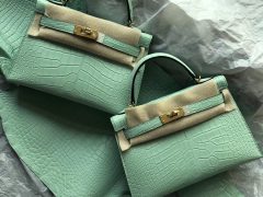 香港爱马仕Hermes kelly mini2 Matte alligator crocodile 6U新薄荷绿
