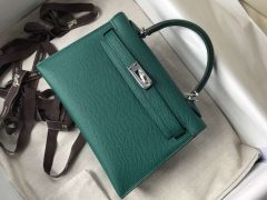 Hermes Mini Kelly 2代 Z6孔雀绿 19cm Epsom 御用手掌纹牛皮 银扣