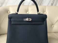爱马仕kelly凯莉包 Hermes 1P鸭子蓝 Kelly 25 Togo 御用小牛皮 银扣