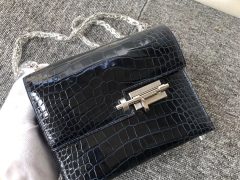 香港石澳爱马仕手枪包定制 Hermes Verrou 17.5cm 1P Colvert 鸭子蓝 美洲鳄