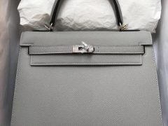 爱马仕kelly包价格 Hermes Kelly Bag 25cm Epsom掌纹牛皮 4z海鸥灰 银扣