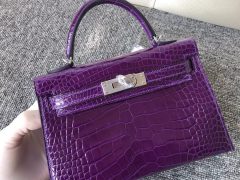 澳门 爱马仕 永利度假酒店 Hermes Kelly mini 二代多少钱 5L极度紫 梦幻紫 美洲鳄