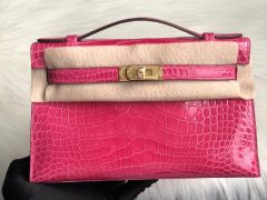 Hermes MiniKelly Pochette 美洲鳄 5J Fuschia Pink 桃粉色 6H Olive green 橄榄绿