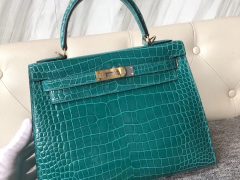 Qatar Doha Hermes Kelly 25cm Shiny Porosus Crocodile 6Q Vert Emeraude