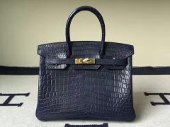 爱马仕尼罗鳄铂金包 Hermes Birkin 30cm Bag 7K宝石蓝 雾面两点尼罗鳄 金扣