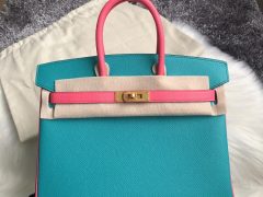 Hermes HSS Birkin 25cm Epsom 7F Blue Paon 8W Rose Azalea 拉丝金扣