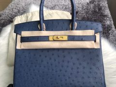 爱马仕铂金包定制价格多少钱 Hermes Birkin 30cm Ostrich 7L Blue de 马耳他蓝