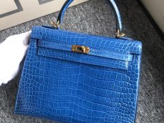 Kuwait Hermes MiniKelly Pochette alligator crocodile 7Q希腊蓝 Blue Mykonos
