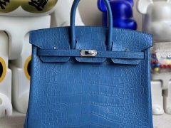 Hermes Birkin 25cm 雾面方块美洲鳄鱼 7Q 希腊蓝 Blue Mykonos 银扣